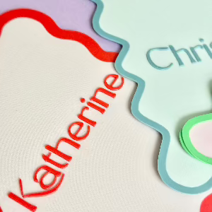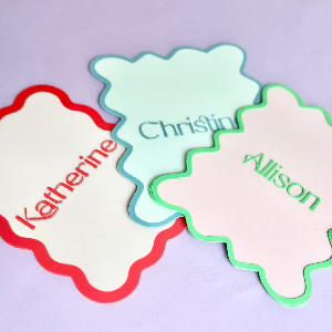 Choose your preferred color combination for the background, name, and scallops. The shufflers are 3D printed with PLA, ensuring they are durable, flexible, and strong.